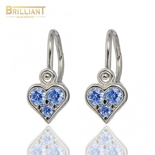Detské zlaté náušnice sú z bieleho 14 karátového zlata s celkovým rozmerom 1,2 cm. Vzor náušníc tvorí srdiečko, ktoré zdobia tri modré kamienky. Zapínanie je na háčik v prednej časti náušníc. Náušnice sú určené pre vek od 0 do 1 roka.